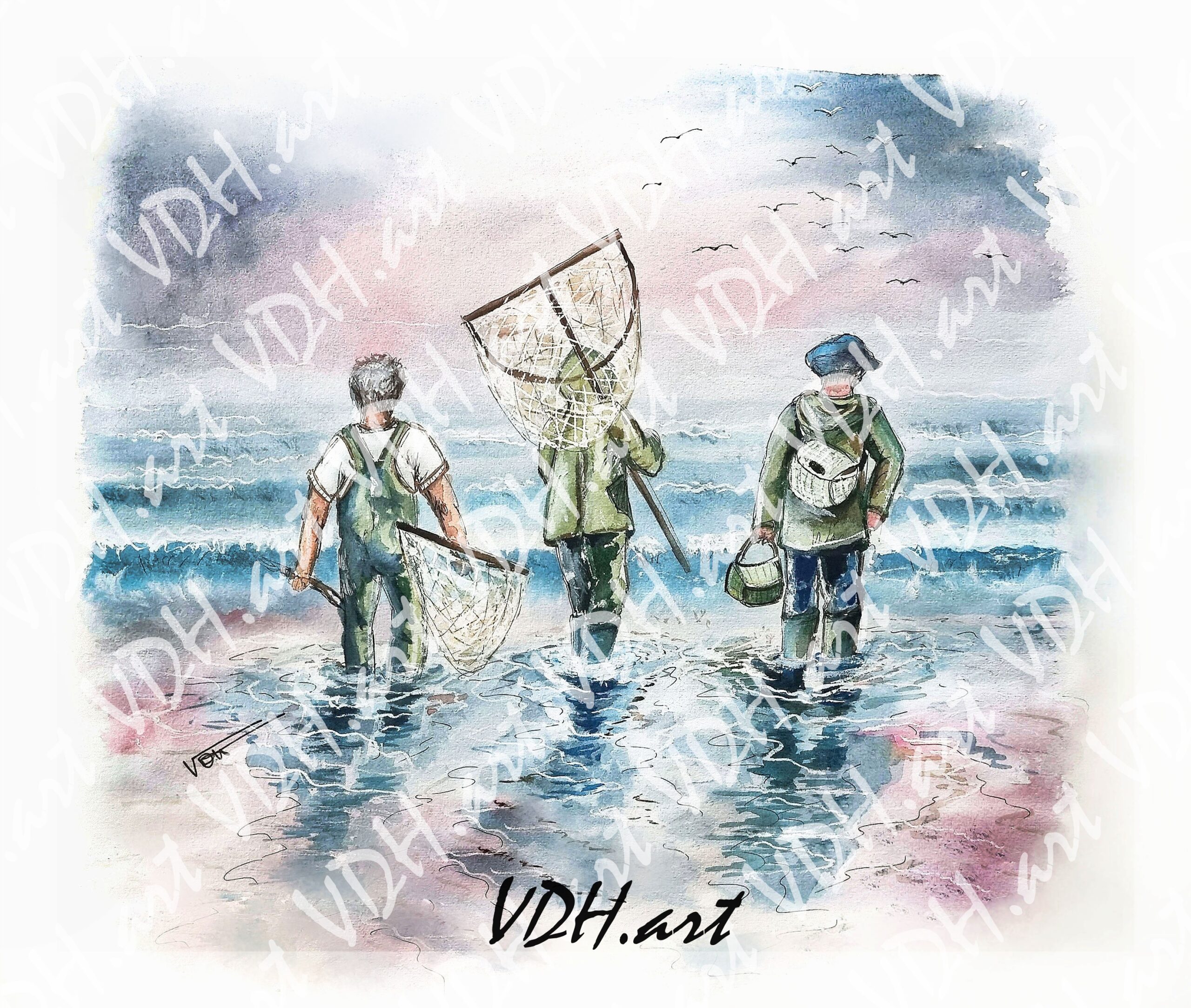 Aquarelle, Le pêcheur à Saint Vaast la HougueAquarelle « Le grand père et son chat « Grand mère à la pêche aux palourdes, Pointe d’AgonAquarelle Balade en barque aux auroresAquarelle, course de Sulky plage GranvillaiseAquarelle, Pêcheurs à pied, NormandieAquarelle, Fillette à la pommeAquarelle l’enfant sous la pluieAquarelle Jeu de pluie